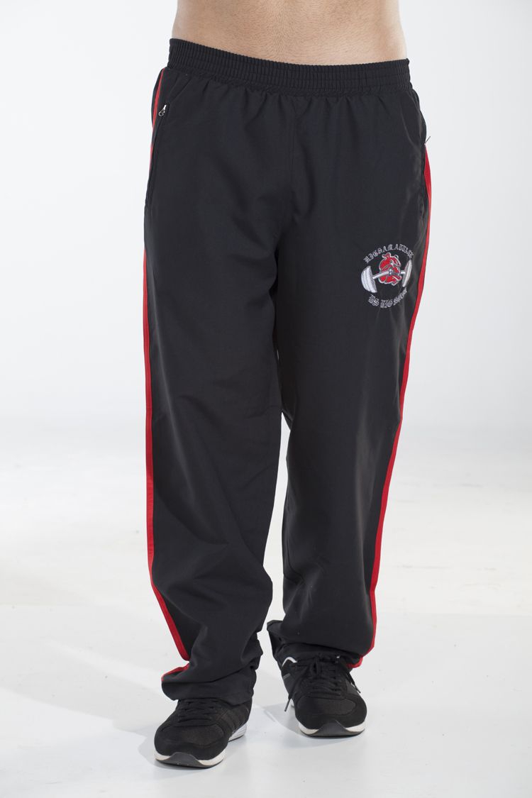 Черные спортивные брюки с красными вертикальными полосами по всей длине сделают контуры вашей фигуры еще более привлекательными и визуально добавят вам роста. Изделие выполнено из качественного, прочного материала. Фасон учитывает индивидуальные особенности атлетов, так как бренд Big Sam специально разрабатывает одежду для любителей здорового образа жизни, спорта и профессиональных спортсменов.
