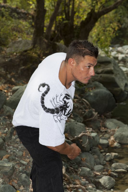 Этот топ — удачная покупка не только для бодибилдинга и спорта, но и для повседневного ношения. Белый цвет – самый удачный выбор для летней одежды! А большое изображение скорпиона на плече представит вас в глазах окружающих уверенным, сильным, мужественным и волевым мужчиной. Вы сможете носить ее годами, наслаждаясь неизменным белым цветом, красивым фасоном и оригинальным принтом.